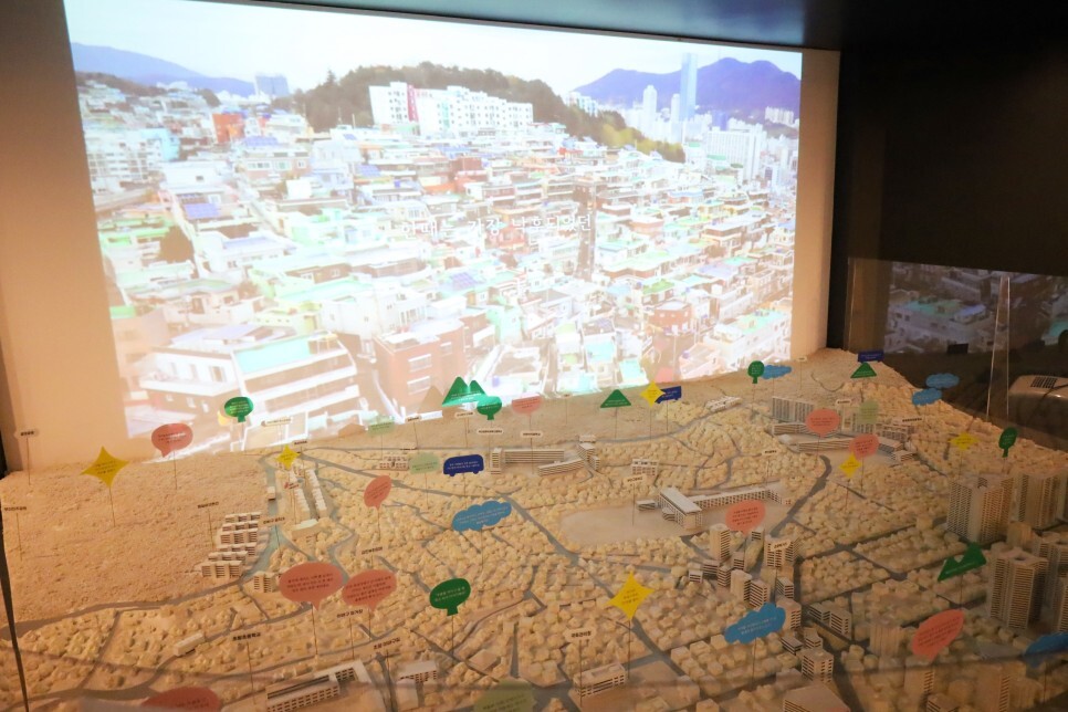 커다란 스크린에서 흘러나오는 영상과 아래에 입체 모형 지도를 통해 산복도로의 매력에 조금 더 빠질 수 있답니다.