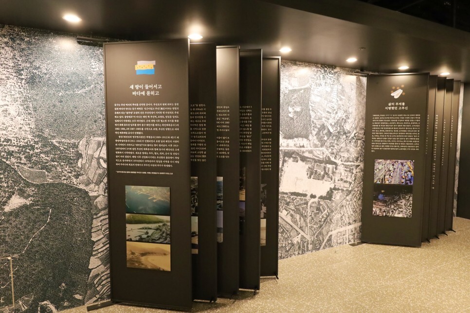 전시관에 들어서면 다양한 전시가 궁금증을 자아내는데요. 이곳은 지난 이야기를 돌아보는 아카이브 존, 산복도로의 이미지를 몸소 체험할 수 있는 미디어아트 존, 그리고 놀이와 체험을 즐길 수 있는 플레이존 등의 공간으로 구성되어 있습니다.