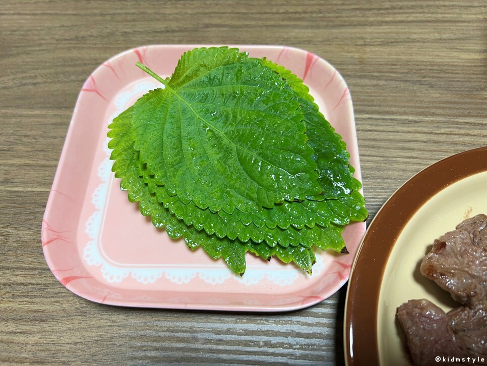 쌈은 앞 베란다 텃밭에서 수확 중이던 깻잎 몇 장 뜯어와서 바로 먹으면 되고