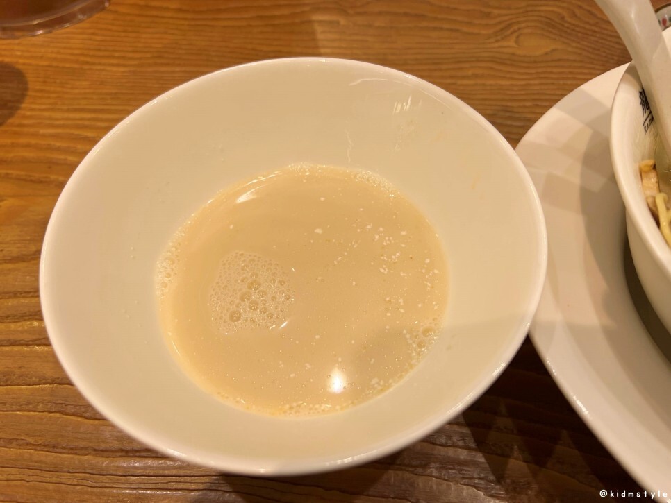 다시 받은 돈코츠 육수이다. 염도를 높게 요청을 했더니 딱 좋다. 몇 번 말했지만 평소에 집밥 등 요리를 해먹을 때 조미료를 거의 사용하지 않고 짜게 먹지 않으나 라멘 등 색깔이 확실한 음식은 추구하는 바 그대로의 맛을 즐기기 위해서 먹는 편이다. 주방에서 만들어 내준 음식 그대로를 즐기는 게 맞는다고 생각한다.