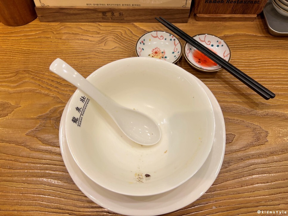 류센소 라멘 추천한다. 본점 염도도 그리 높지 않으며 맛있게 즐기기에 딱 좋은 돈코츠라멘이다. 추운 겨울에는 굴라멘도 맛있으니 한번 맛보기를 바란다. 류센소 롯데광복점을 계기로 앞으로 원도심에 라멘 맛집이 많이 생기기를 기원하며 글을 마무리한다.