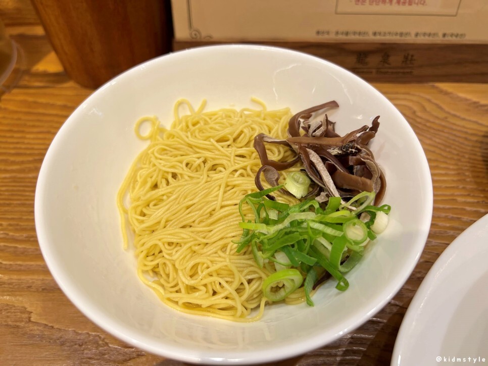 금방 비웠다. 염도가 올라오니 더 맛있게 먹을만하다. 물론 이 집의 기본 제공 국물이 염도가 낮아서 맛이 없다는 것이 전혀 아니다. 앞서 말했지만 염도가 낮을 뿐 국물의 깊이는 만족스럽기 때문이다. 이 부분을 혼동하지 말자.