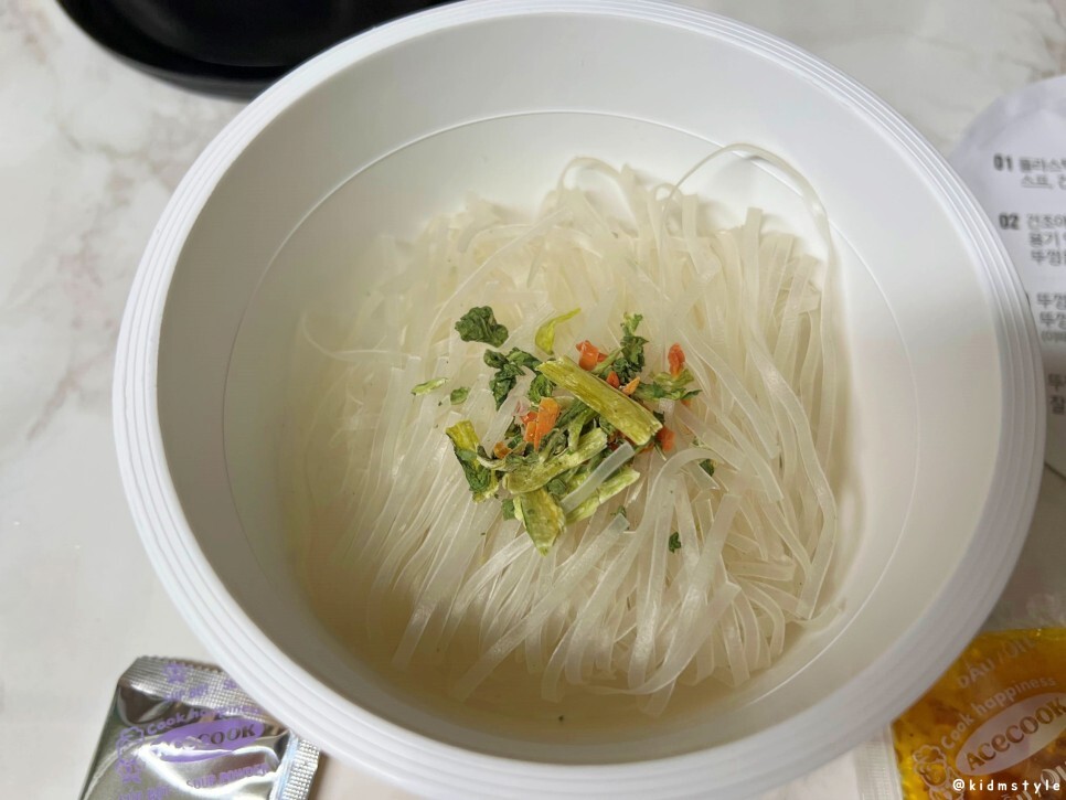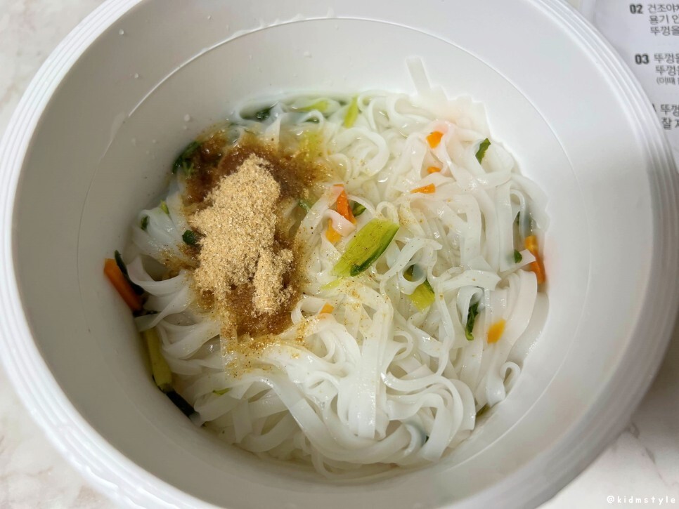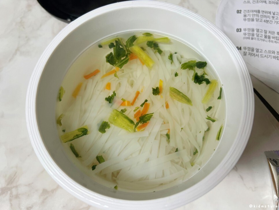 건조야채를 넣고 끓는 물을 부어준다.