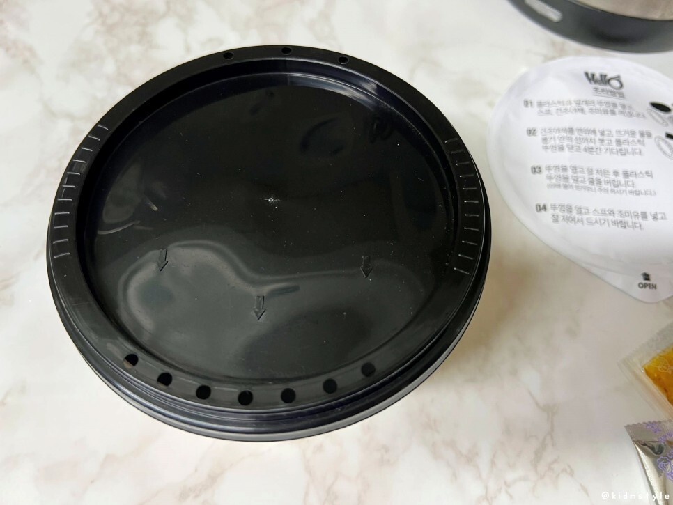 뚜껑을 닫고 4분 정도 기다려본다. 물 버리는 구멍이 확실하게 뚫려 있다.