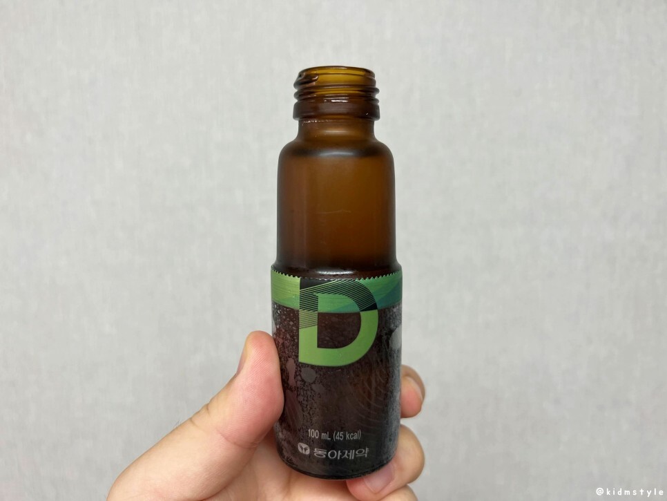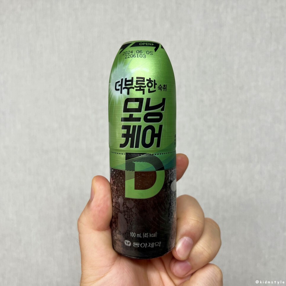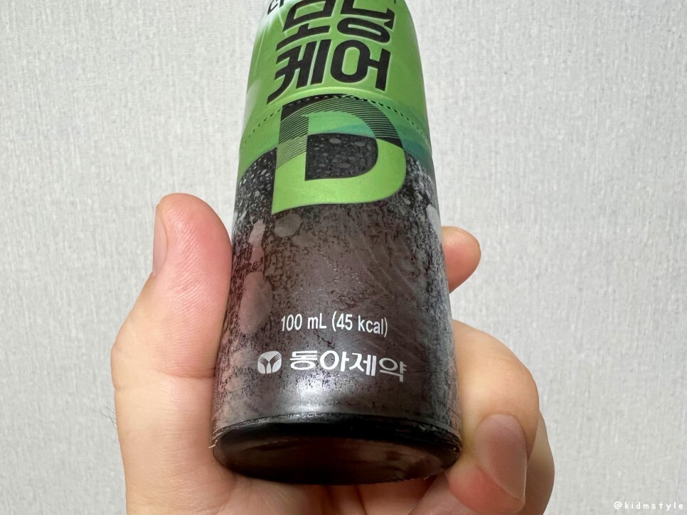 박카스로 유명한 동아제약 제품이다. 더부룩한 숙취 모닝케어 D. 100ml 45kcal이다.