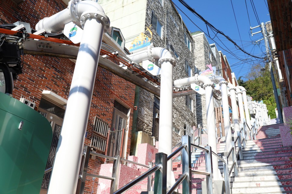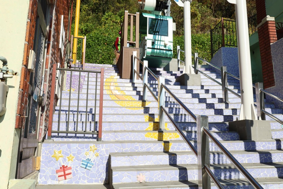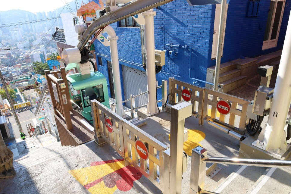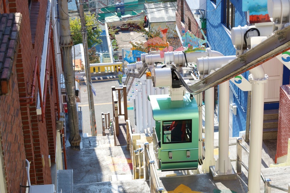 192개의 가파른 계단을 오르며 주민들이 많은 불편을 겪고 있었는데 국내 최초 현수식 모노레일이 생기면서 주민들의 간절한 소원이 이루어진 것 같습니다. 주민들의 보행환경 개선은 물론이며 조형물, 벽화, 야간 조명난간 등의 관광 요소까지 갖추었네요.