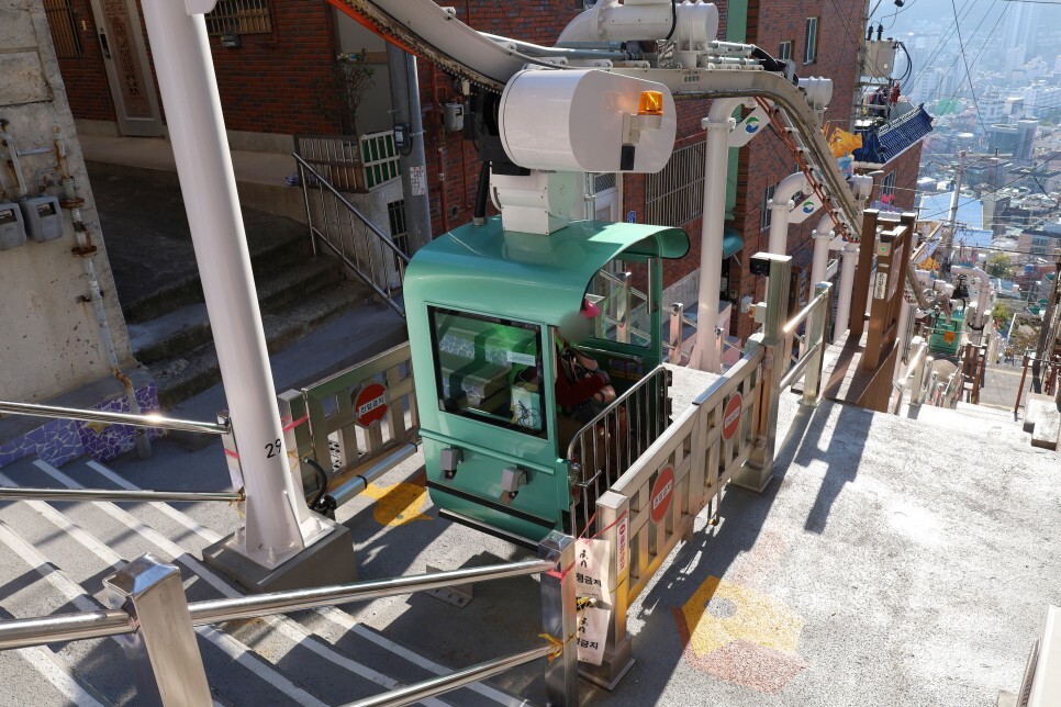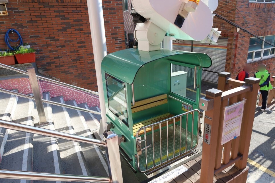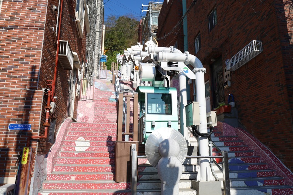 소망계단 모노레일은 산복도로 고지대 보행환경 개선 사업의 일환으로 추진되었는데요. 동네 특성상 오래 거주하고 있는 어르신들이 많습니다. 이 계단은 총 192개나 되는 꽤 가파른 계단인데요. 모노레일의 설치로 인해 주민들이 정말 만족하고 잘 이용하고 있다고 합니다.