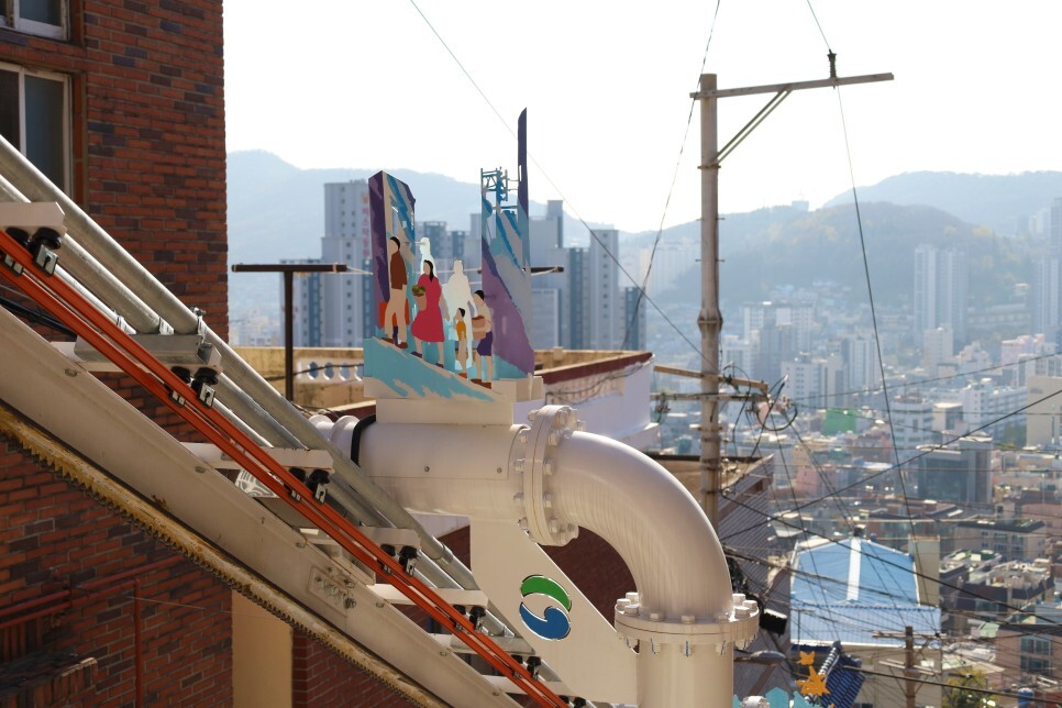 계단을 다 내려와서 한번 찍어봅니다. 소망계단의 특징을 잘 살려서 다양한 조형물과 벽화들이 있어서 마을의 분위기가 한층 더 밝아 보이네요.