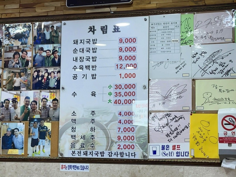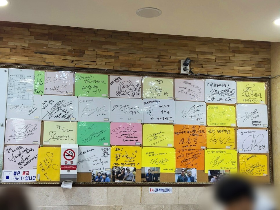 벽면에는 메뉴판, 원산지 표시판과 함께 다양한 유명인들의 사진과 싸인이 걸려있습니다. 부산을 찾는 많은 분들에게 인기가 있는 집은 틀림없어 보입니다.