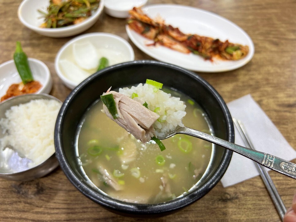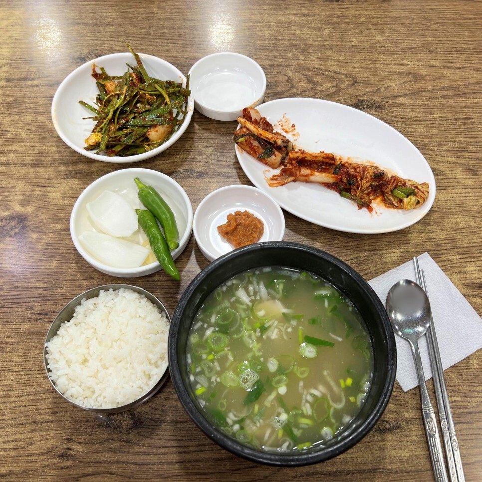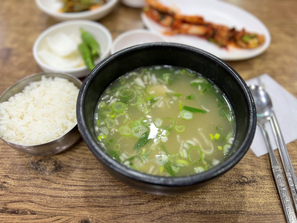 사진을 찍다 보니 국밥이 나옵니다. 국물이 딱 봐도 맑아 보이죠. 어떤 맛인지 제가 알려드릴게요.