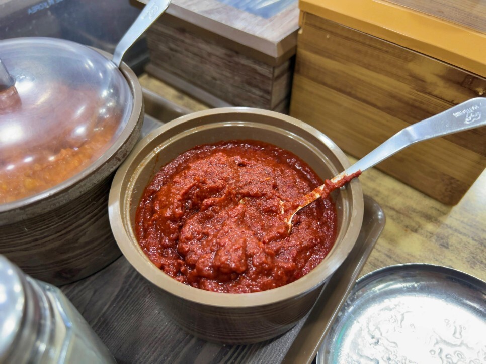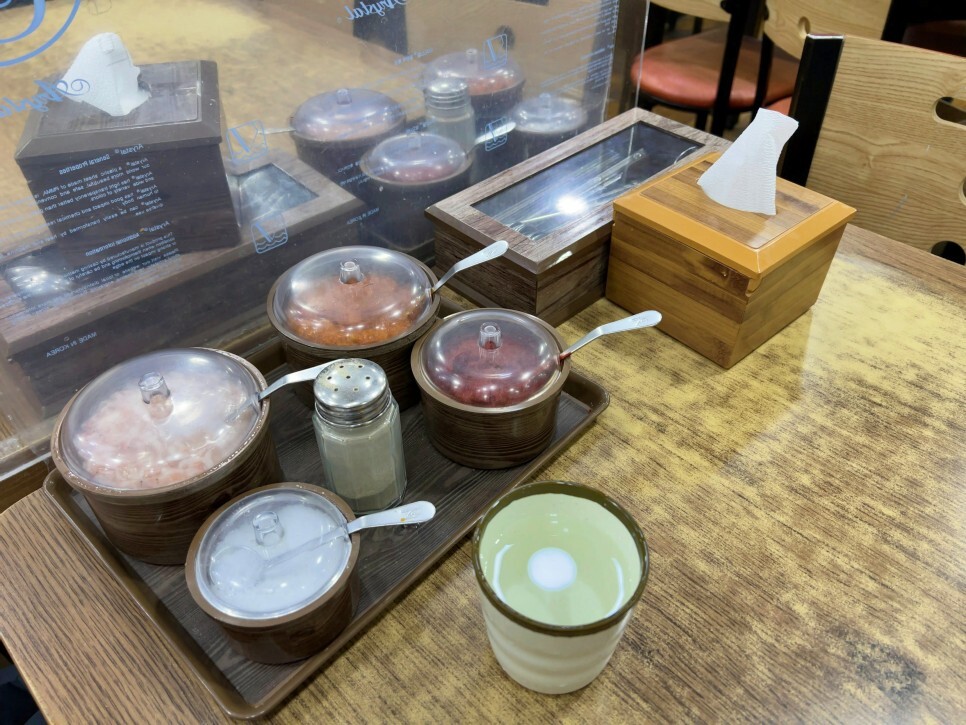 테이블에는 새우젓, 쌈장, 양념 다대기, 소금, 후추 등이 비치되어 있습니다. 취향껏 넣어드시면 되는데요. 돼지국밥 본연의 맛을 즐기기 위해서 초반에는 아무것도 넣지 않고 맛보는 것을 추천드립니다.