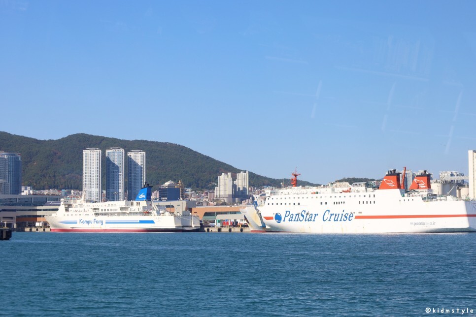 부산항 국제여객터미널에 정박 중인 선박 2대가 반갑다. 왼쪽은 부산-시모노세키를 운행하는 하마유호, 오른쪽은 부산-오사카를 운행하는 팬스타드림호이다. 모두 타본 경험이 많아서 참 반가운 배들이다.