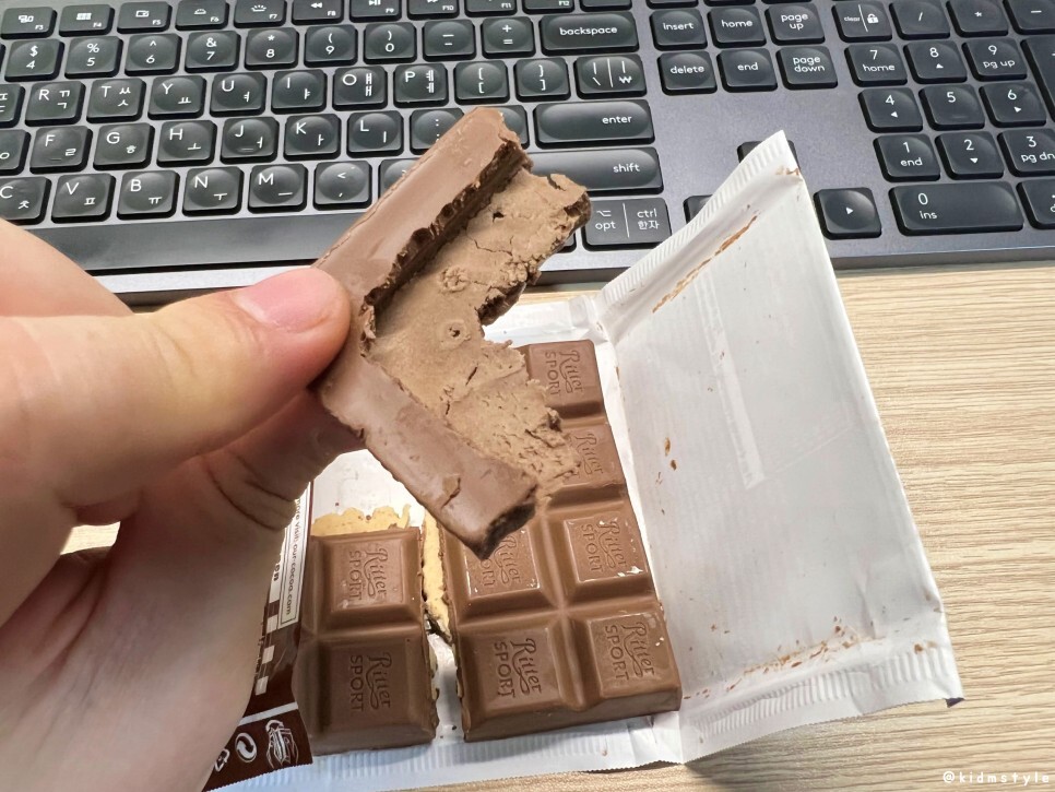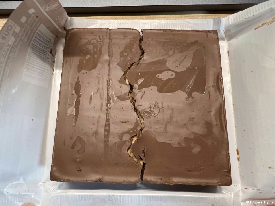 속에 비스킷이 있고 겉에는 초콜릿이 발라져 있다. 상당히 맛있어 보인다.