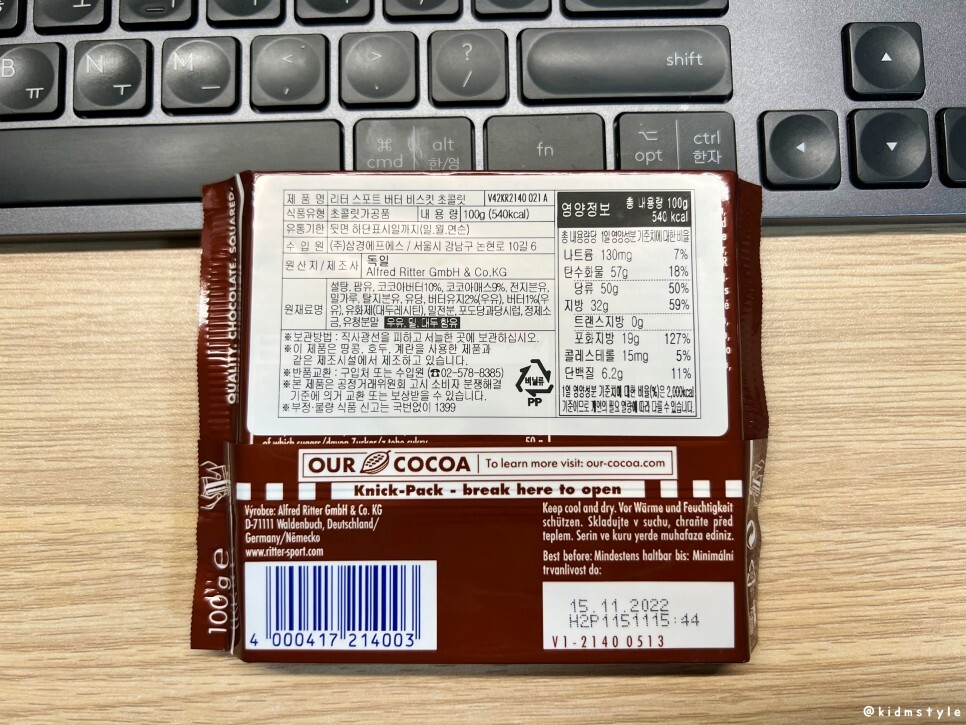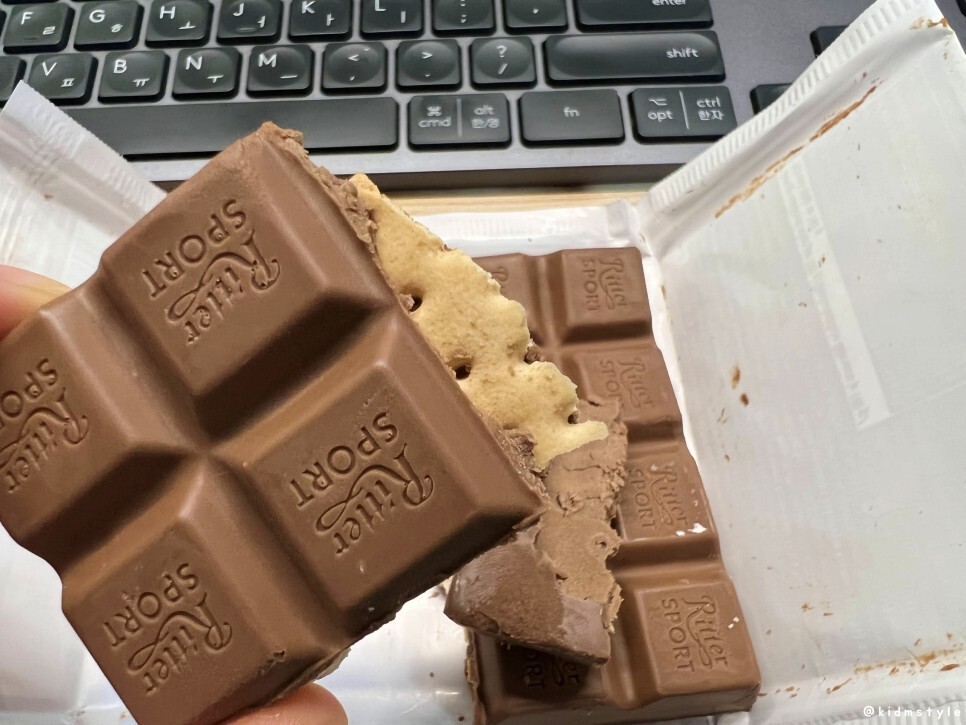 비스킷을 먼저 먹는 바람에 초콜릿만 먹게 되었네. 좋다 좋아. 그리 달지 않아서 참 매력적이다. 독일에서 인기 좀 끌겠는데?