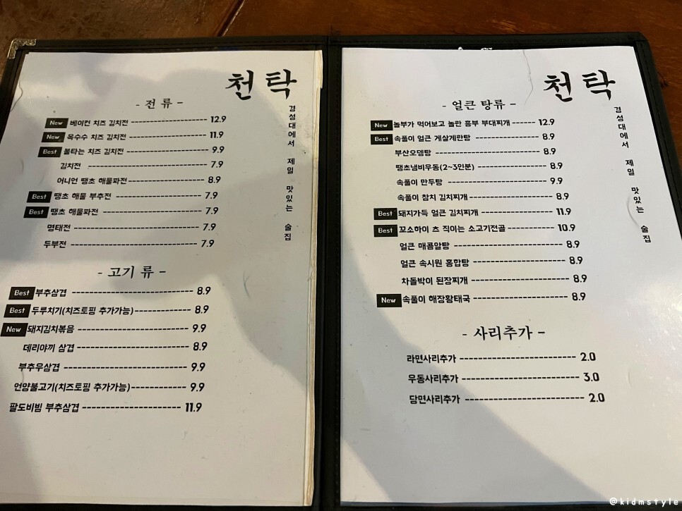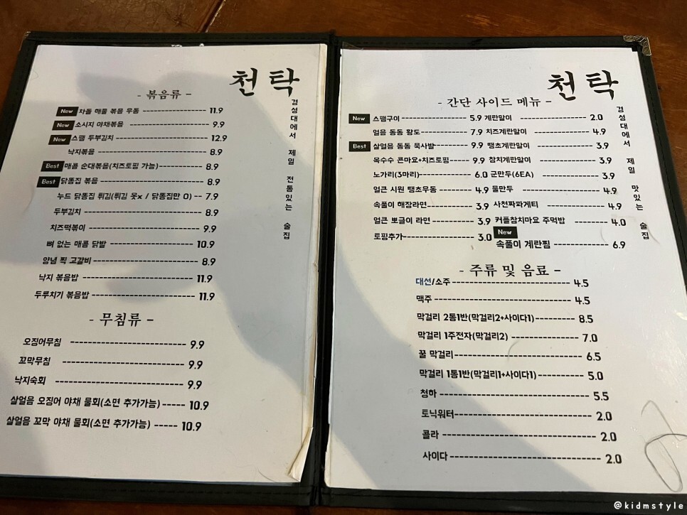 천탁이 경성대 앞에 몇 군데 있는데 오늘 가볼 곳은 경성대 부경대 3호점이라는 간판을 달고 있다. 본 블로거가 군 전역 후 복학생이던 시절에도 천탁에서 참 많이 마셨다. 그때는 경대 앞 청도치킨 바로 옆에 있는 천탁을 자주 갔던 기억이 난다.