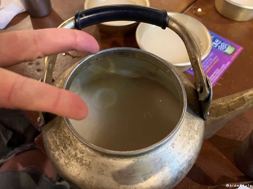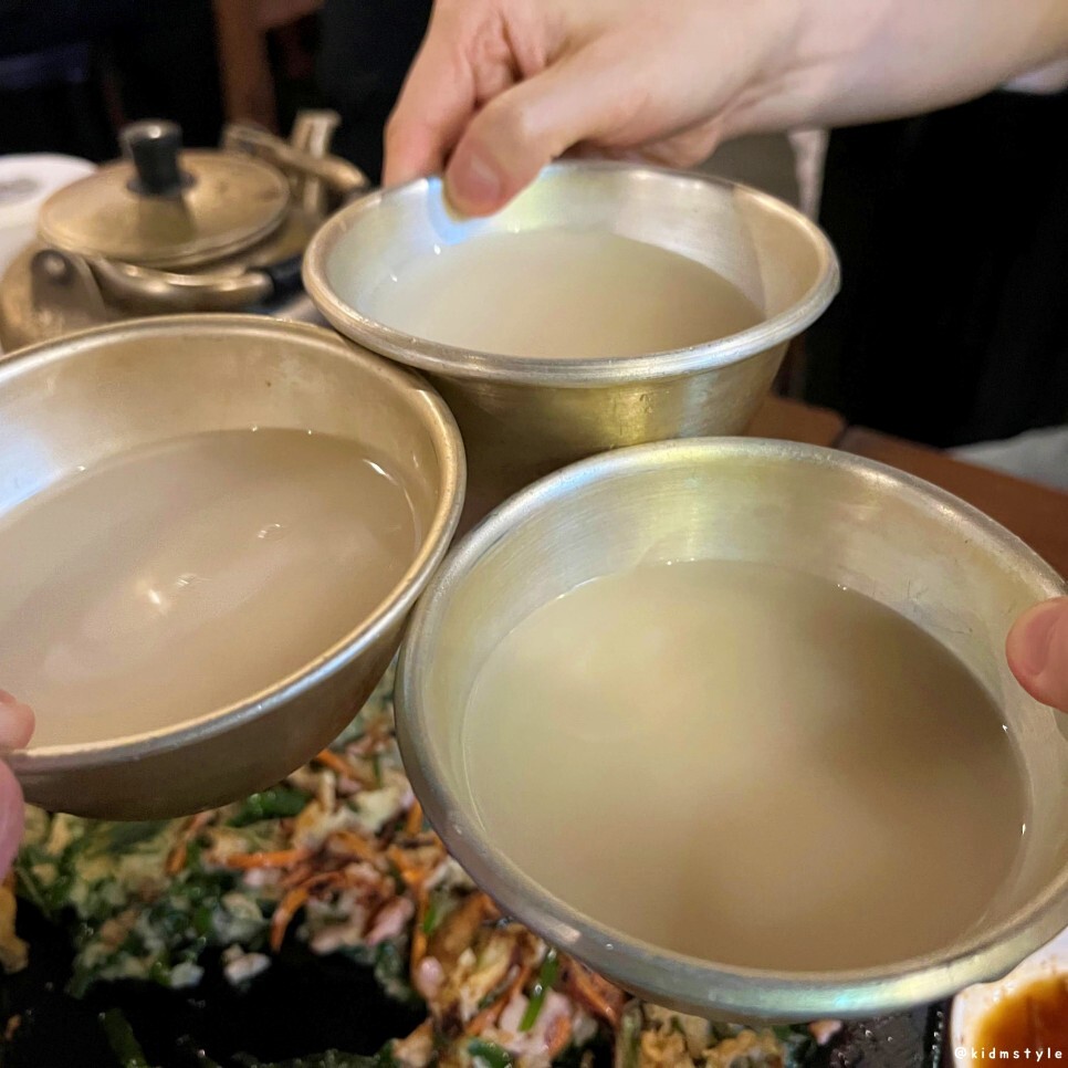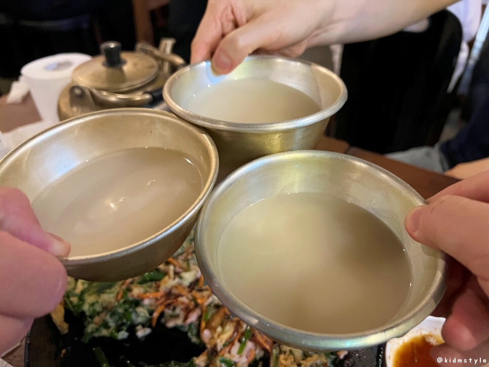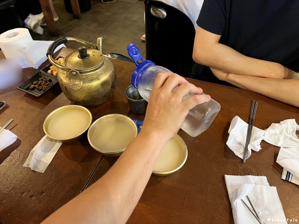 시원한 막걸리가 나왔다. 똑같이 한 잔씩 따르고 물도 한잔 따르고