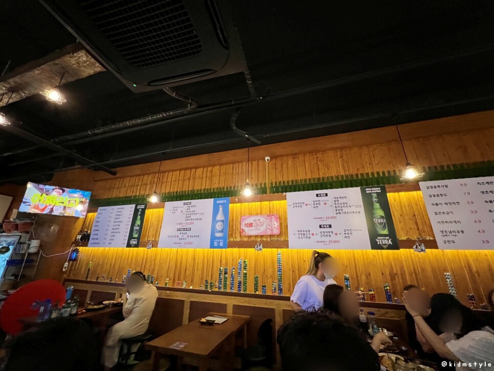 불금 저녁이라 손님이 많다. 대부분 대학생, 그리고 간혹 3, 40대까지 있다. 직원분들은 활기차고 친절하더라.