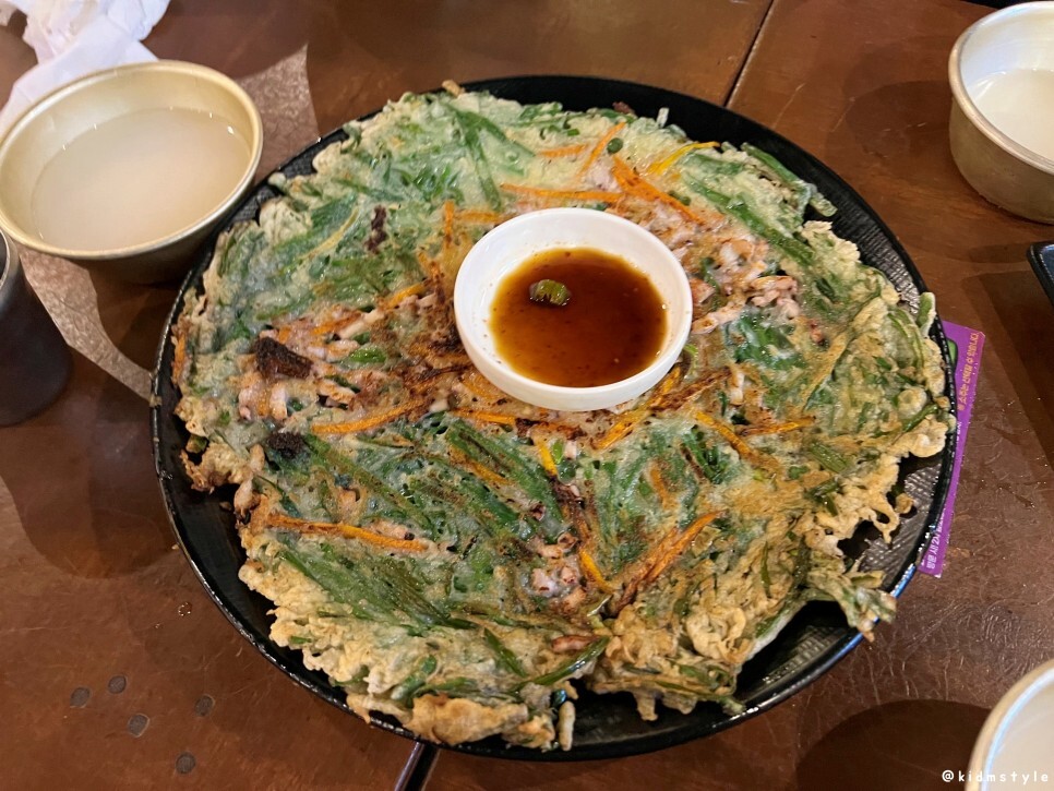 1,2, 3차로 맛있는 것을 많이 먹어서 이미 배가 부른 상황이라 가볍게 땡초 해물 부추전을 하나 주문해 본다. 가격 7,900원 참 저렴하다.