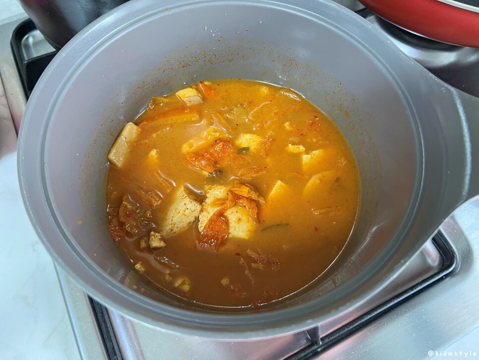 팔팔 끓는다. 냄새를 맡으니 군침이 돈다. 뭔가 제대로 된 김치찌개라는 느낌이 밀려온다.