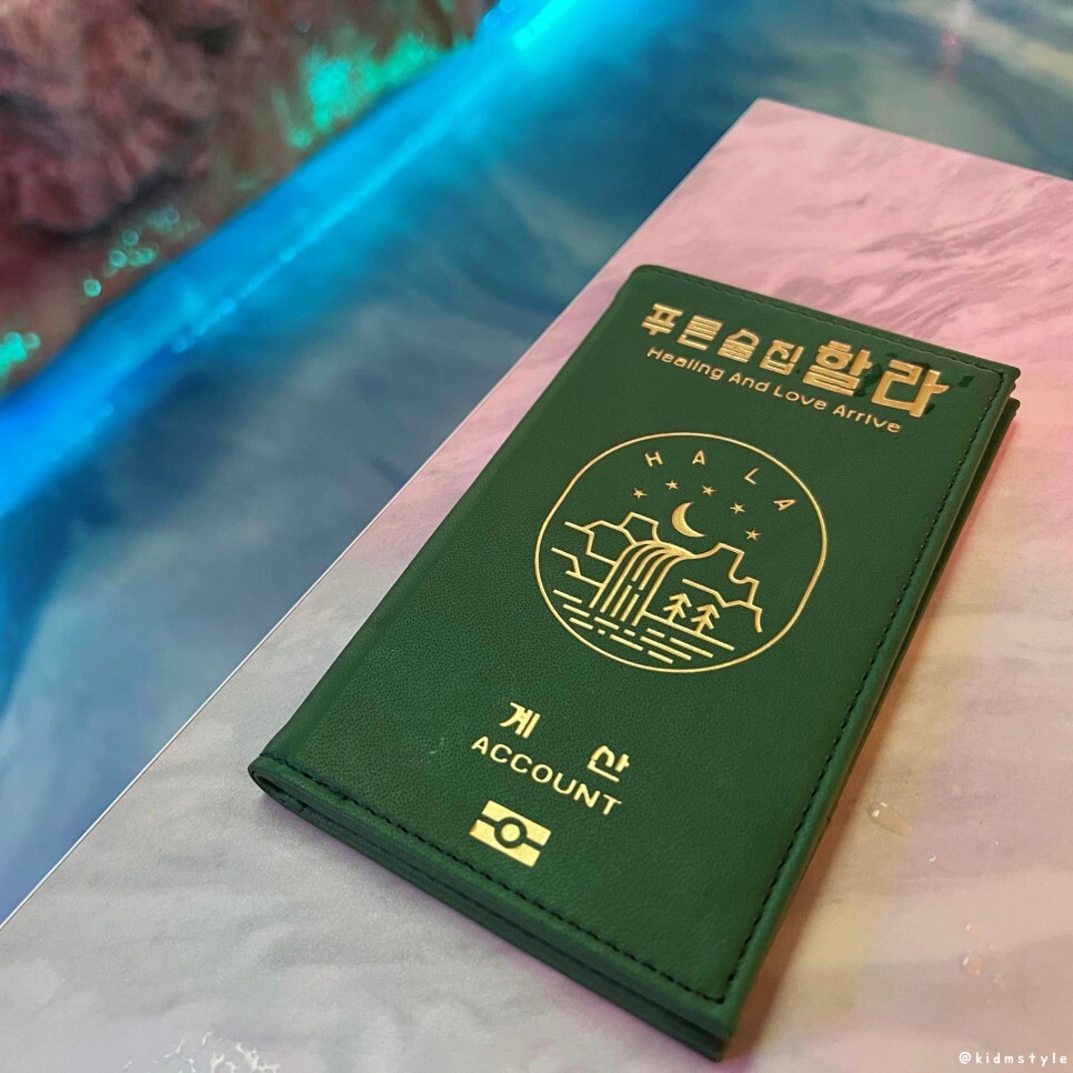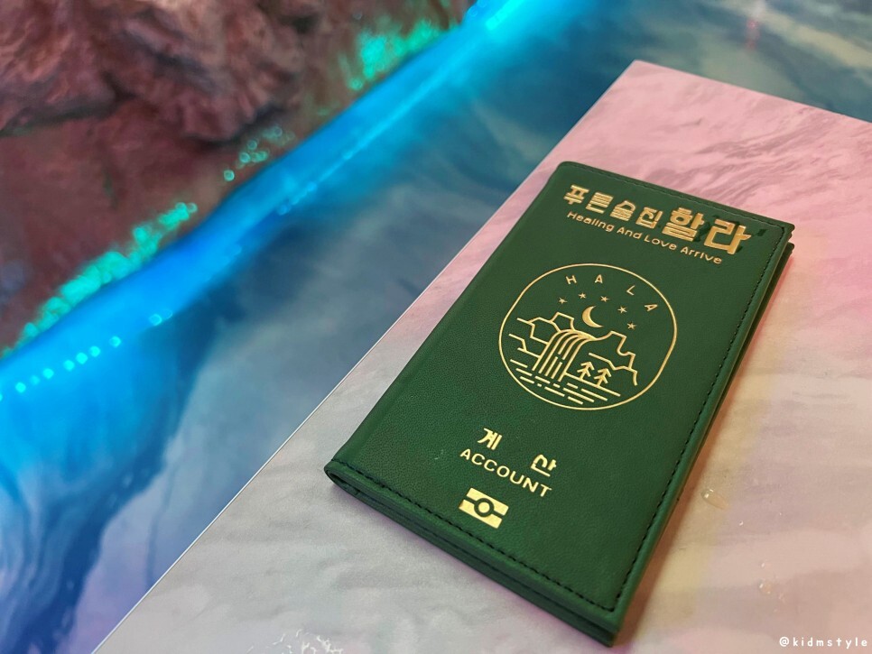 제주 컨셉답게 계산서도 여권 색깔과 비슷하다.