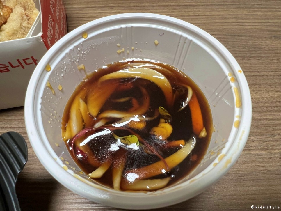 탕수육 소스는 너무 묽지 않고 전분을 적당히 써서 적당한 점성을 가진 소스인데 너무 달지도 않고 맛이 괜찮다.