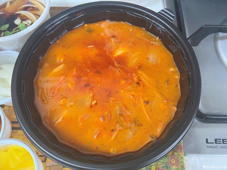 국물통을 열어보니 짬뽕 국물 향이 확 올라온다.