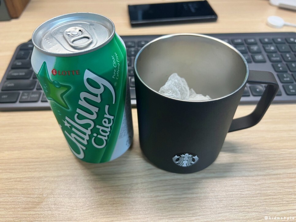 다 먹고 소화가 안돼서 사이다 한 잔.