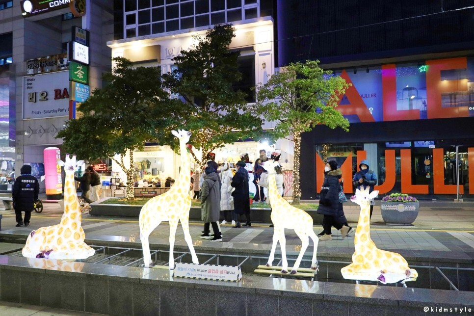 기린 가족도 반가워요. 거리 곳곳에 다양한 동물들이 자리하고 있어서 아이들에게 인기가 많았습니다.
