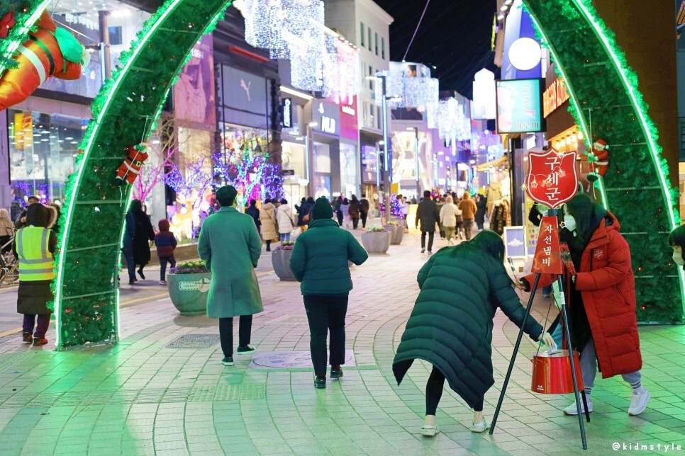 광복로 곳곳에 구세군 자선냄비도 놓여있었습니다. 시민들의 따스한 손길 덕분에 훈훈한 모습이 연출되기도 하네요.
