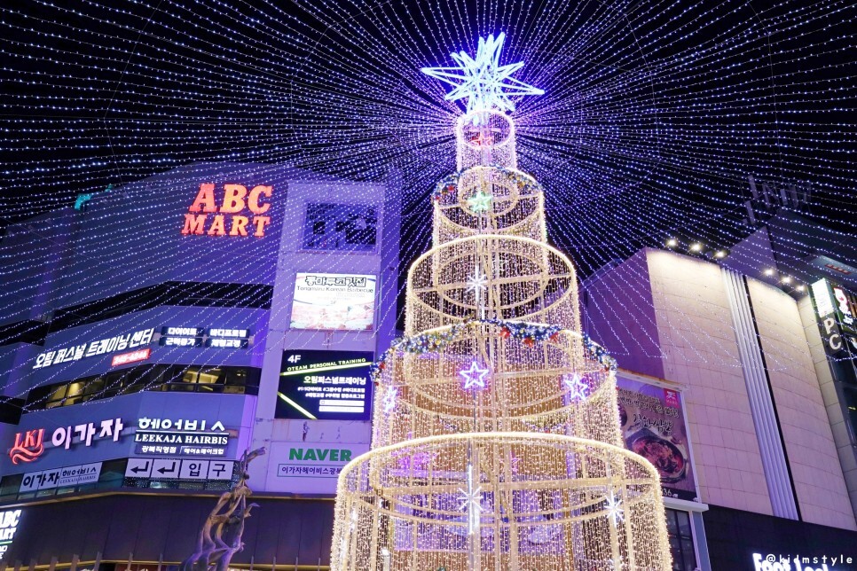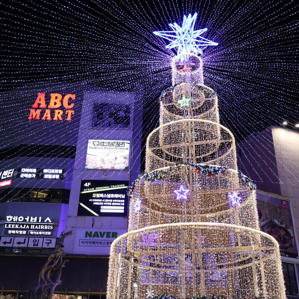 매년 한 해를 마무리하면서 바라보는 광복로 시티스팟의 메인 트리는 늘 인상적입니다. 올해는 크리스마스 케이크 형태의 트리가 멋진 위용을 뽐내고 있네요.
