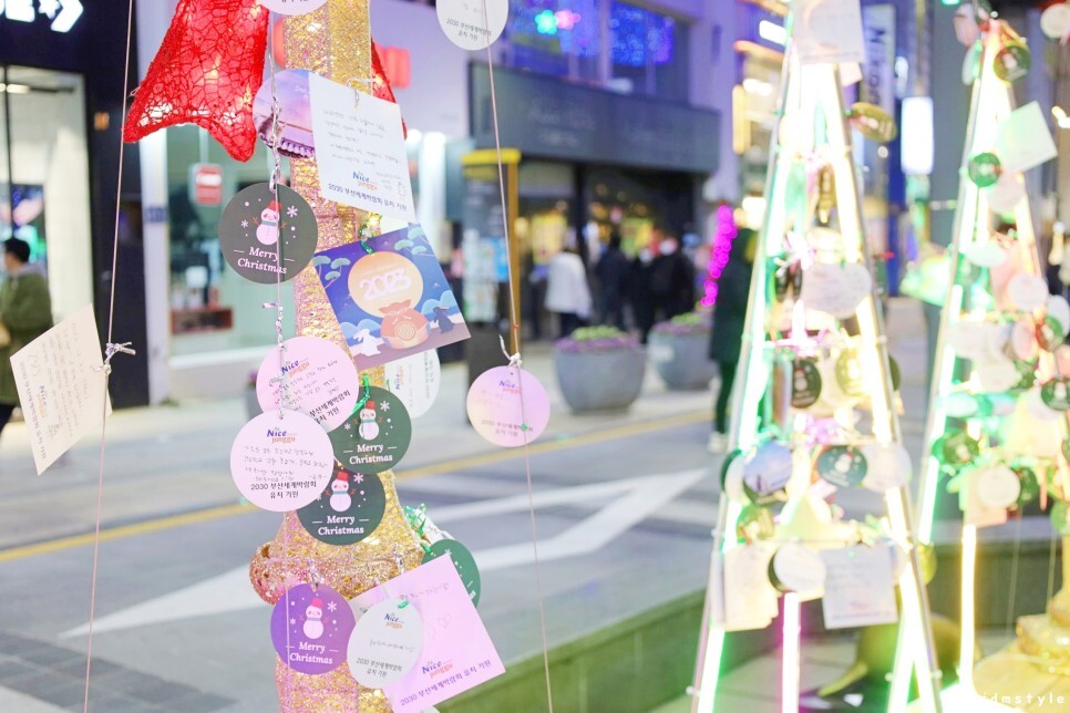 광복로 겨울빛 트리축제는 거리의 구역을 나누어 다양한 컨셉으로 꾸며놓았습니다. 광복로 입구의 스노우볼이 있는 공간이 희망의 거리, 새해 소망을 적어 트리에 걸 수 있는 이곳이 치유의 거리, 광복로 시티스팟에서 약국거리 방향은 승리의 거리, 그리고 동주여고 쪽으로 올라가는 광복중앙로는 회복의 거리 등 다양한 모습의 트리축제를 즐길 수 있답니다.