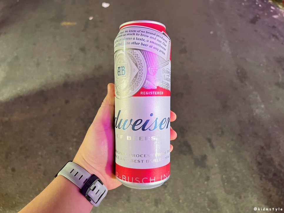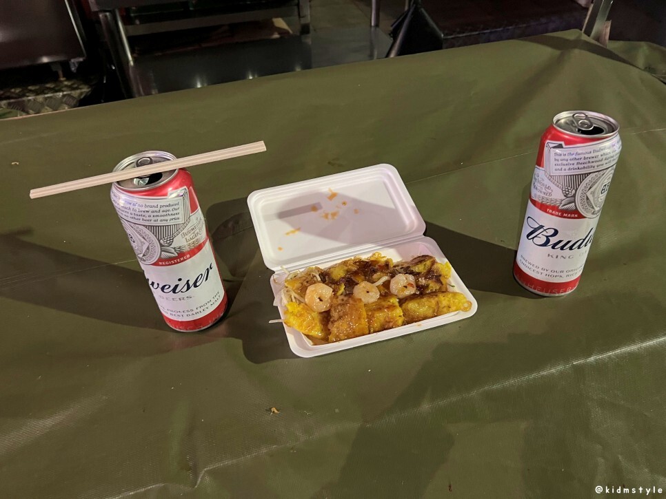 야시장에 들어가기 전에 근처 편의점에서 750ml 뚱캔 버드와이저를 하나 손에 들고 시작한다.