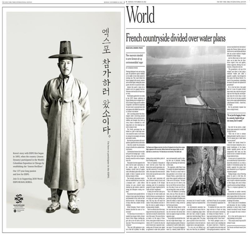 아울러, 부산시에서는 이번 외신들의 연이은 보도를 통한 부산 홍보에 더욱 힘을 싣고자 저명 외신인 '뉴욕타임즈', '파이낸셜타임즈', '타임', '포브스', '블룸버그'에 2030부산세계박람회 홍보 광고도 추진하였답니다.