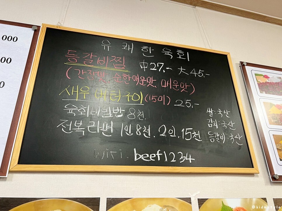 등갈비찜, 새우버터구이, 전복라면 등 육회를 못 먹는 사람을 위한 메뉴들도 보인다.