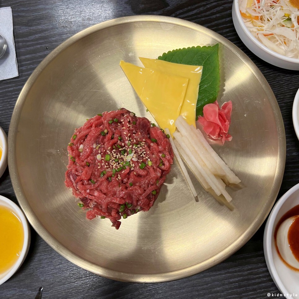 다양한 메뉴가 많은데 본 블로거는 이 집에 오면 육회만 먹는다. 육회가 2만 원으로 저렴한 편인데 불과 몇 달 전까지만 해도 18,000원이었다. 남포동 일대에서 가성비가 가장 좋은 육회집이다.