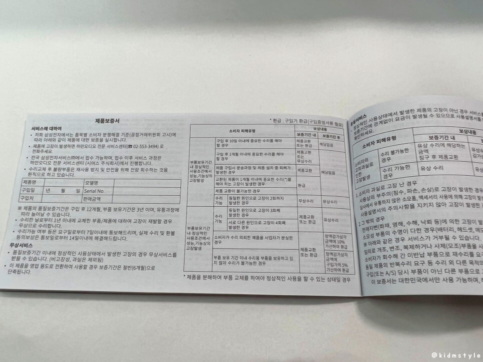 삼성에서 정식 수입한 제품을 구입하였기에 고장이 나면 삼성전자에서 수리를 받을 수 있다.