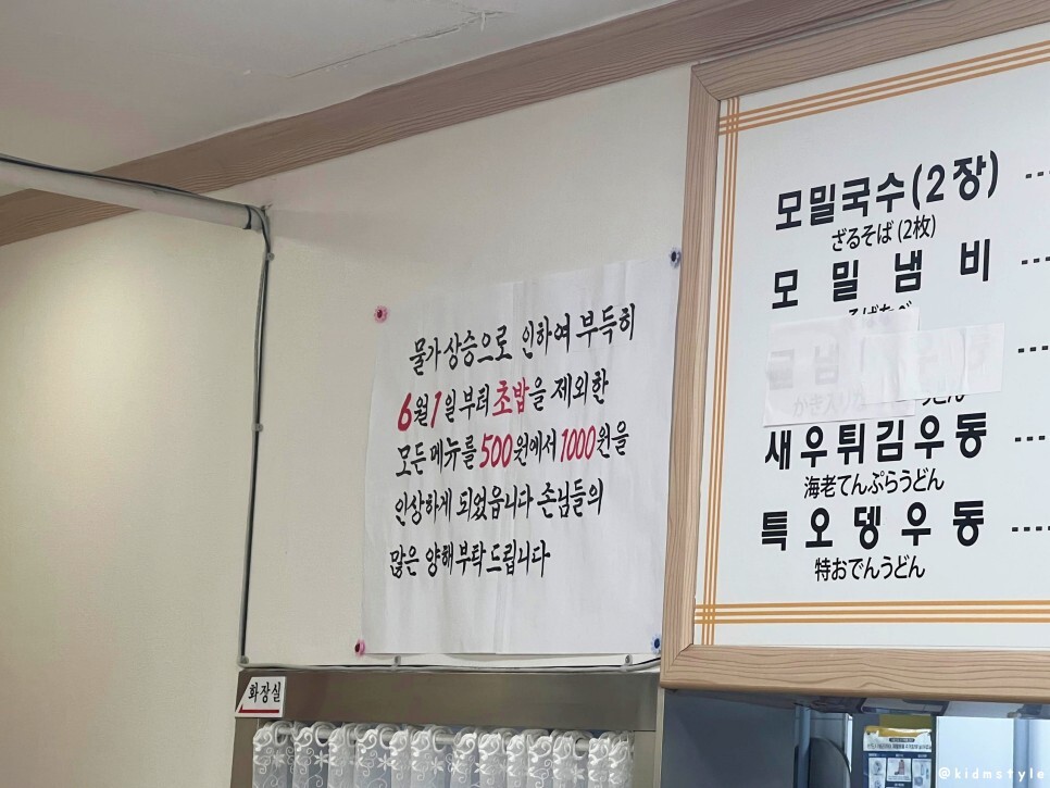 2020년에 모밀국수 7,000원, 2022년에 8,000원, 더 이상은 안 올랐으면 좋겠다.