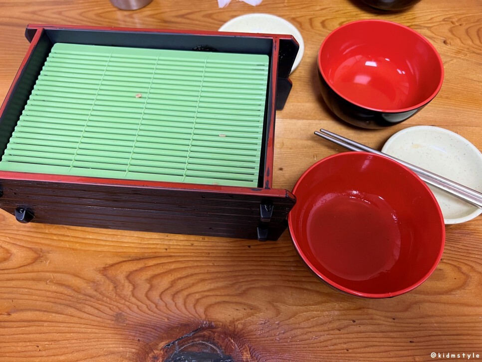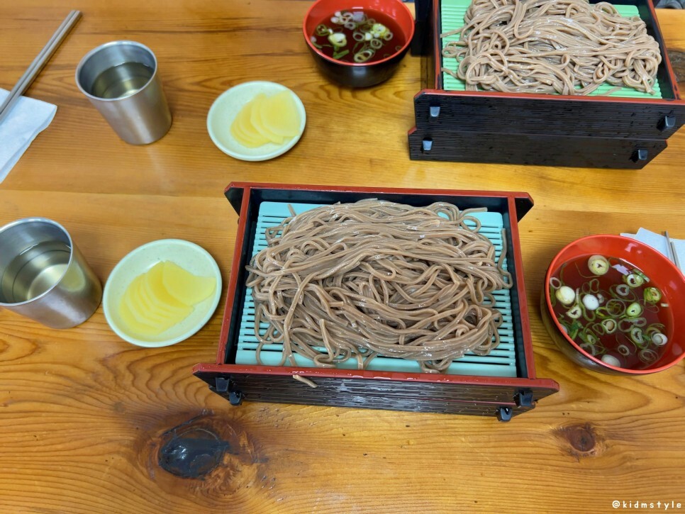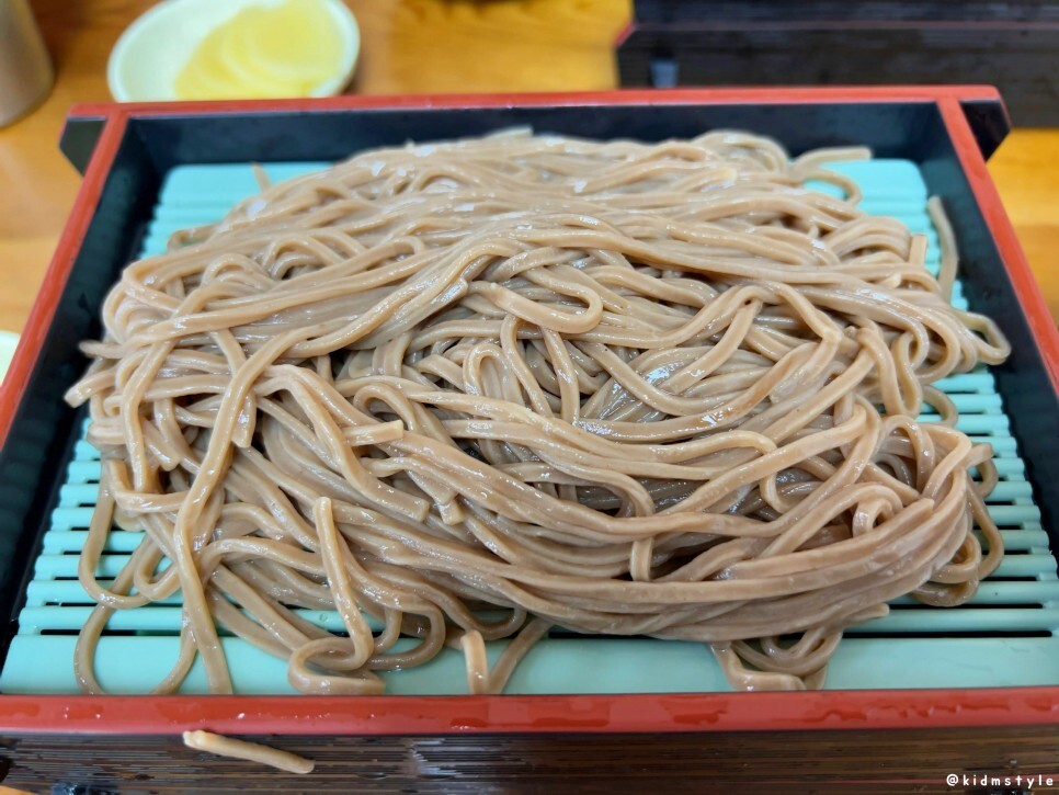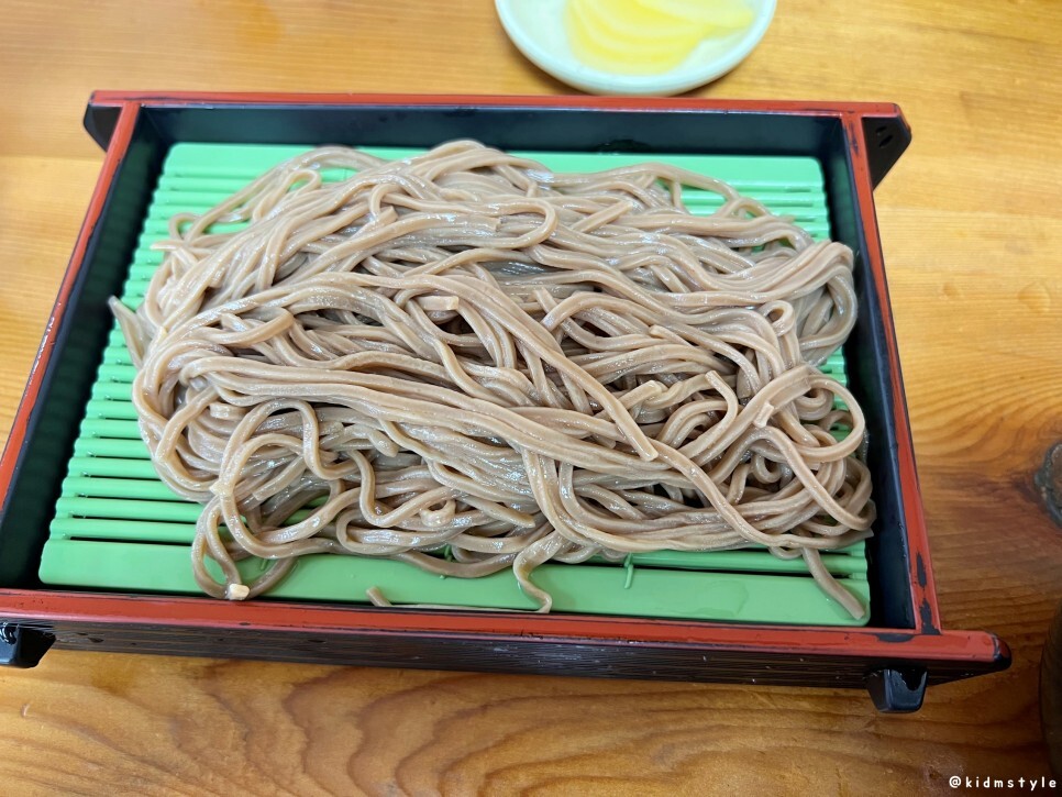 1인분에 모밀 2판이다. 그리고 단무지와 육수 국물이 부족하면 추가로 요청하면 된다.