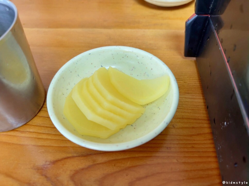 2년 전 방문했을 때는 짠맛이 강했는데 오늘은 희한하게 짠맛이 좀 빠지고 단맛과 짠맛의 균형이 적당히 맞는 느낌이다. 육수에서 멸치 향을 느낄 수가 있는데 오늘은 단맛이 좀 치고 올라와줘서 멸치 향도 기분 좋게 느껴진다. 2년 전 후기를 보니 너무 짜서 계속 짜다고 적어놨는데 뭔가 개선이 된 것은 확실하다.