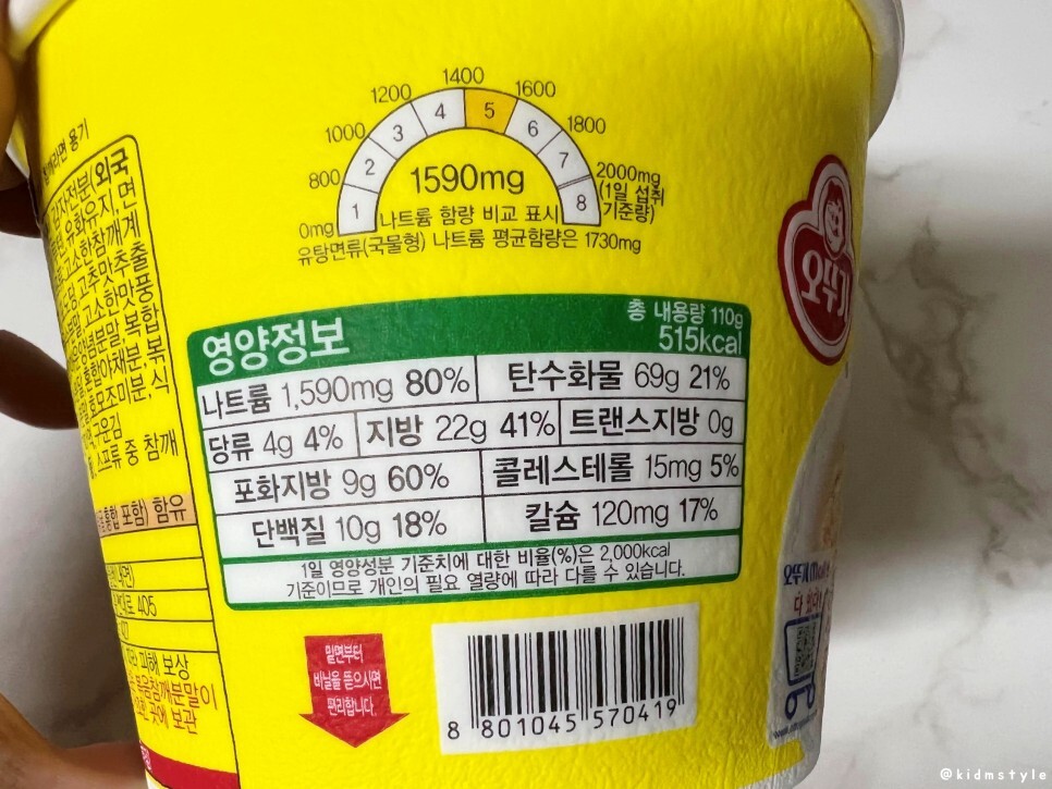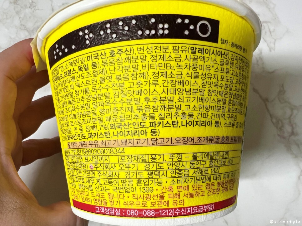 오뚜기 참깨라면 용기 큰컵 영양성분 정보