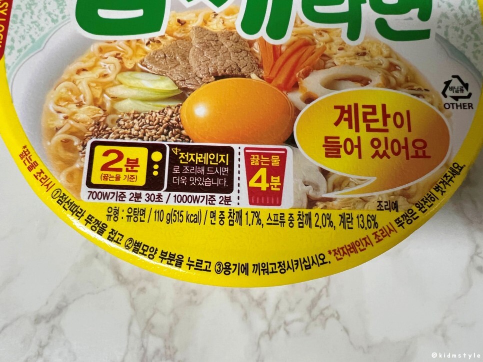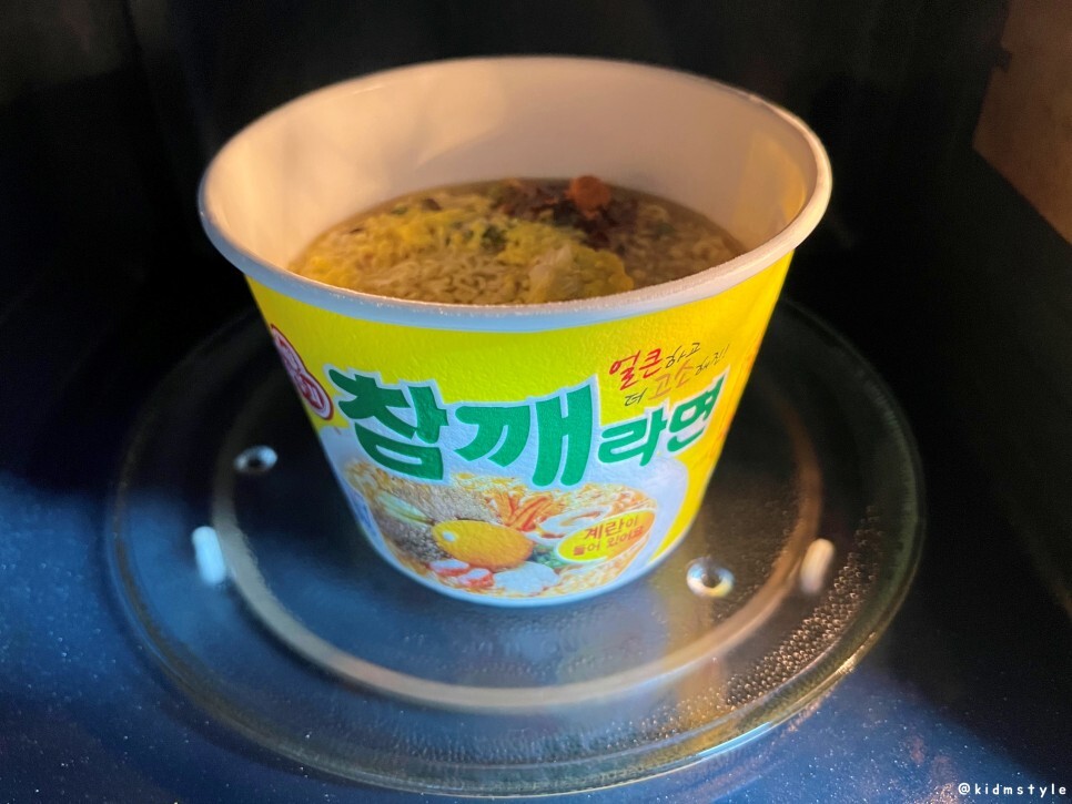 끓는 물을 붓고 4분을 기다리면 되는데 전자레인지로 조리하면 더 맛있다.