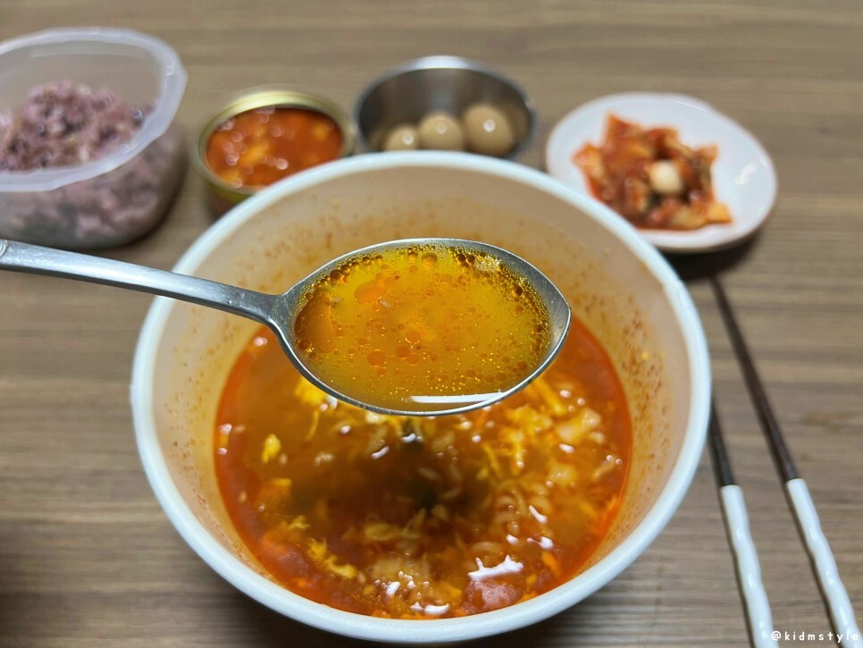 - 유성스프를 넣고 잘 저어서 먹으면 된다.