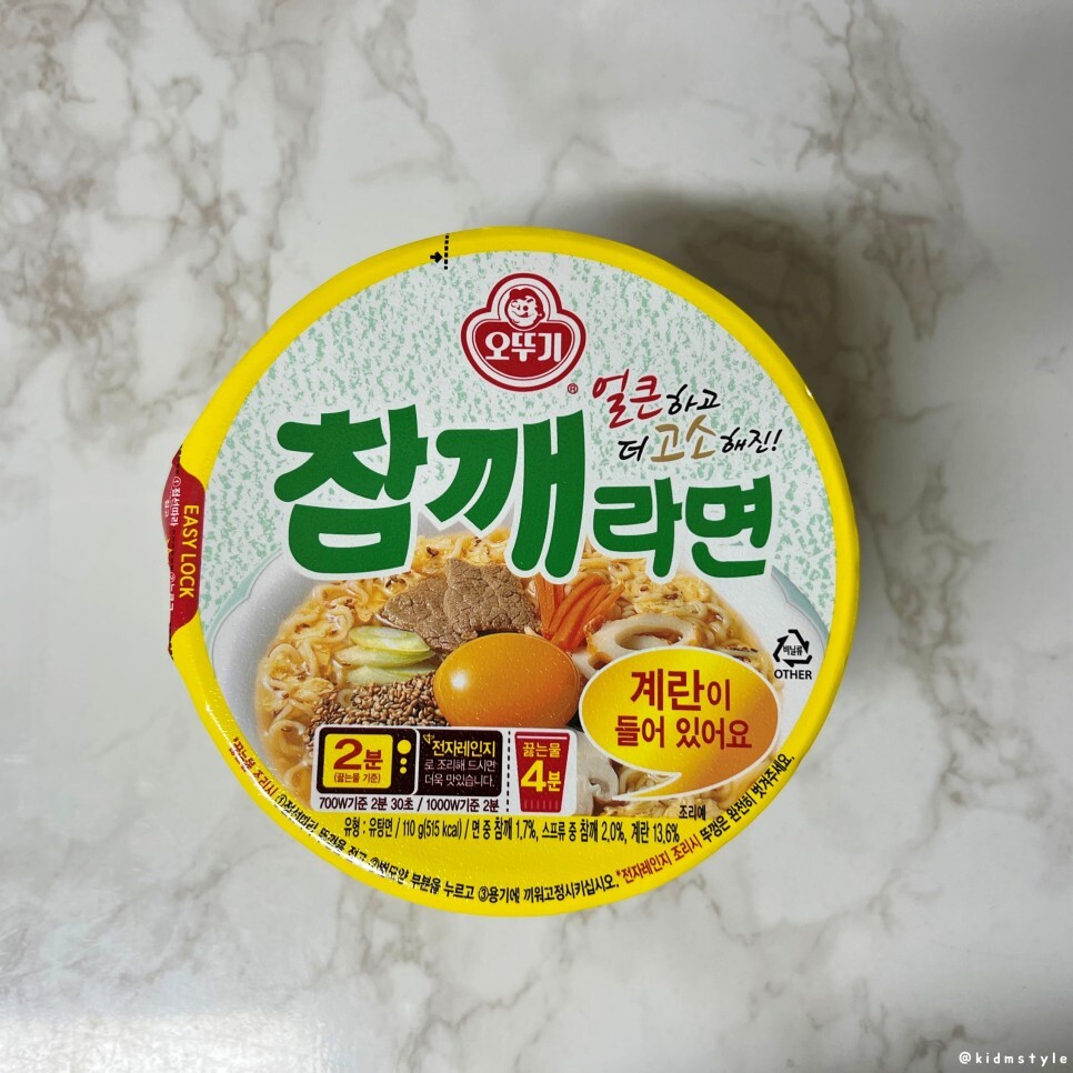 참깨라면은 계란과 참기름이 들어가서 고소할 것 같은데 생각보다 얼큰하고 매콤하다. 그래서 인기가 많고 마니아층이 많은 것 같다. 그 부분이 이 라면의 포인트이자 장점이고.