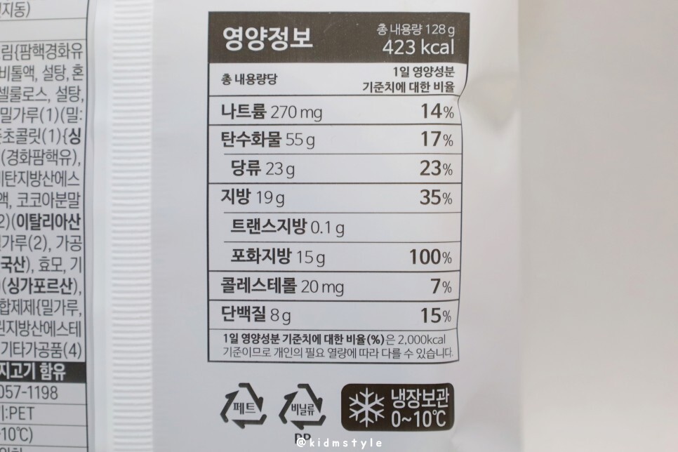 제품의 가격은 2,700원이며 128g, 423kcal이다.