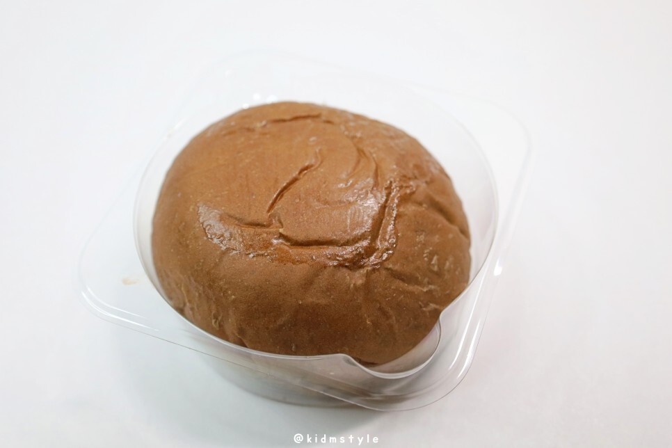 빵이 용기에 가득 차 있고 한쪽에 초코크림의 흔적이 보인다. 크림을 주입한 곳인 것 같다.