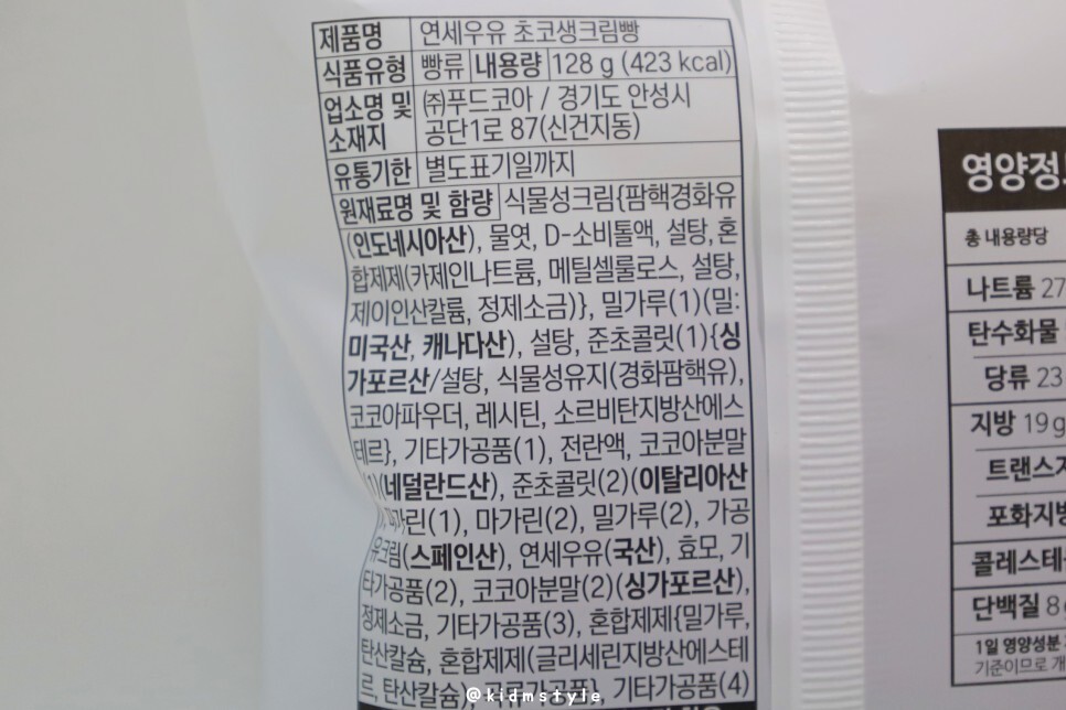 연세우유 초코생크림빵 영양성분 정보