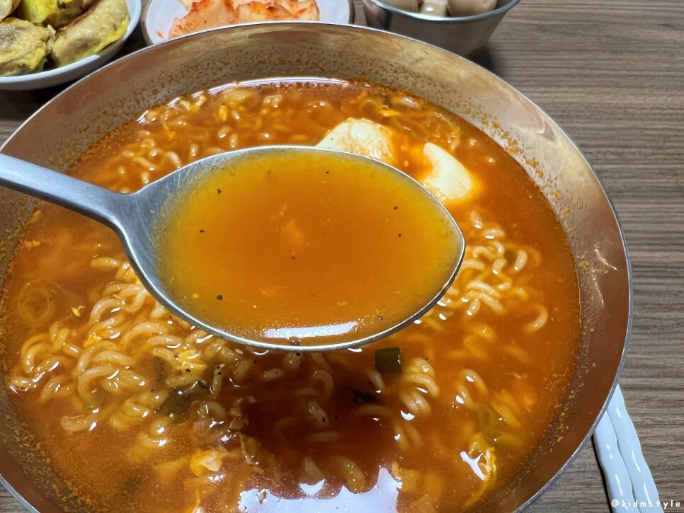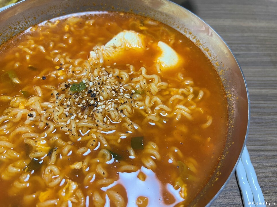 밥을 한 숟가락씩 국물을 적셔서 맛보니 괜찮다. 밥 말아먹기도 괜찮은 라면이다.