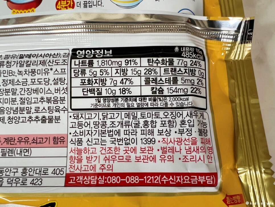 열려라 참깨라면 영양성분 정보 참고
