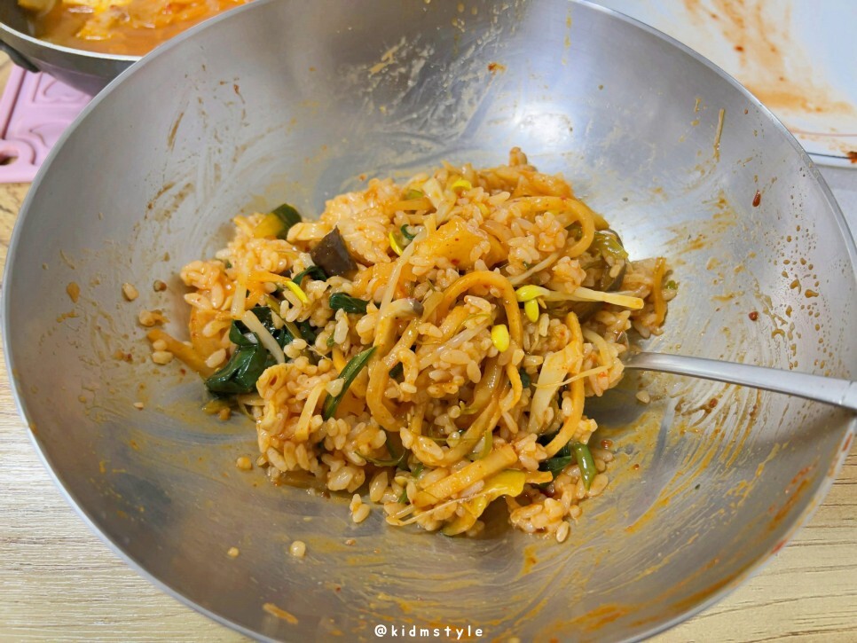 김치찌개를 퍼먹다가 나물도 이리저리 올려본다. 참기름과 고추장은 적당히 넣어준다. 과유불급.