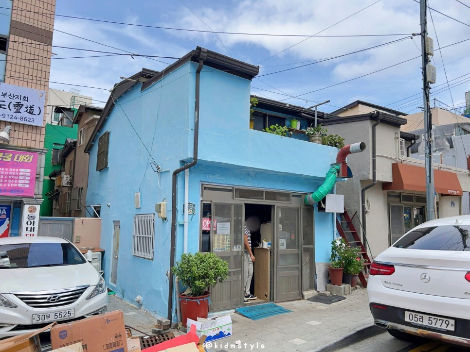11시 ~ 14시 사이에는 주정차 단속 유예가 되어 가게 앞에 주차를 하면 되는데 본 블로거는 바로 옆 홈플러스 영도점에 주차를 하였다. 정면에 보이는 파란 페인트가 칠해진 식당이 오늘 가볼 곳이다. 왼쪽에 있는 부산갈매기 명가도 소주 한잔하기 괜찮은 곳이다.
